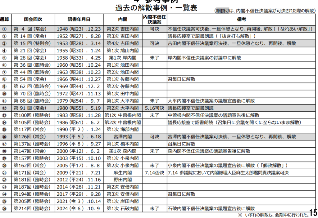 その結果、以下のように「総理の専権事項」として解散が時の政権の意のままに行われて、その度に選挙が行われることになっている。